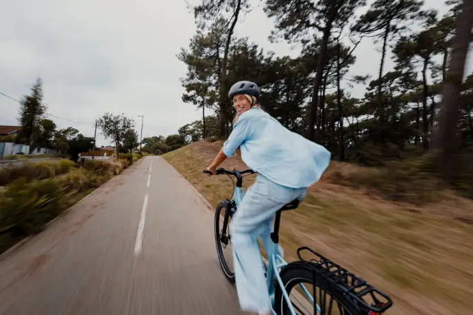 - Pyörässä on monipuoliset lisävarusteet, kuten lukittava joustokeula, lokasuojat, tavarateline, valaisimet ja seisontatuki