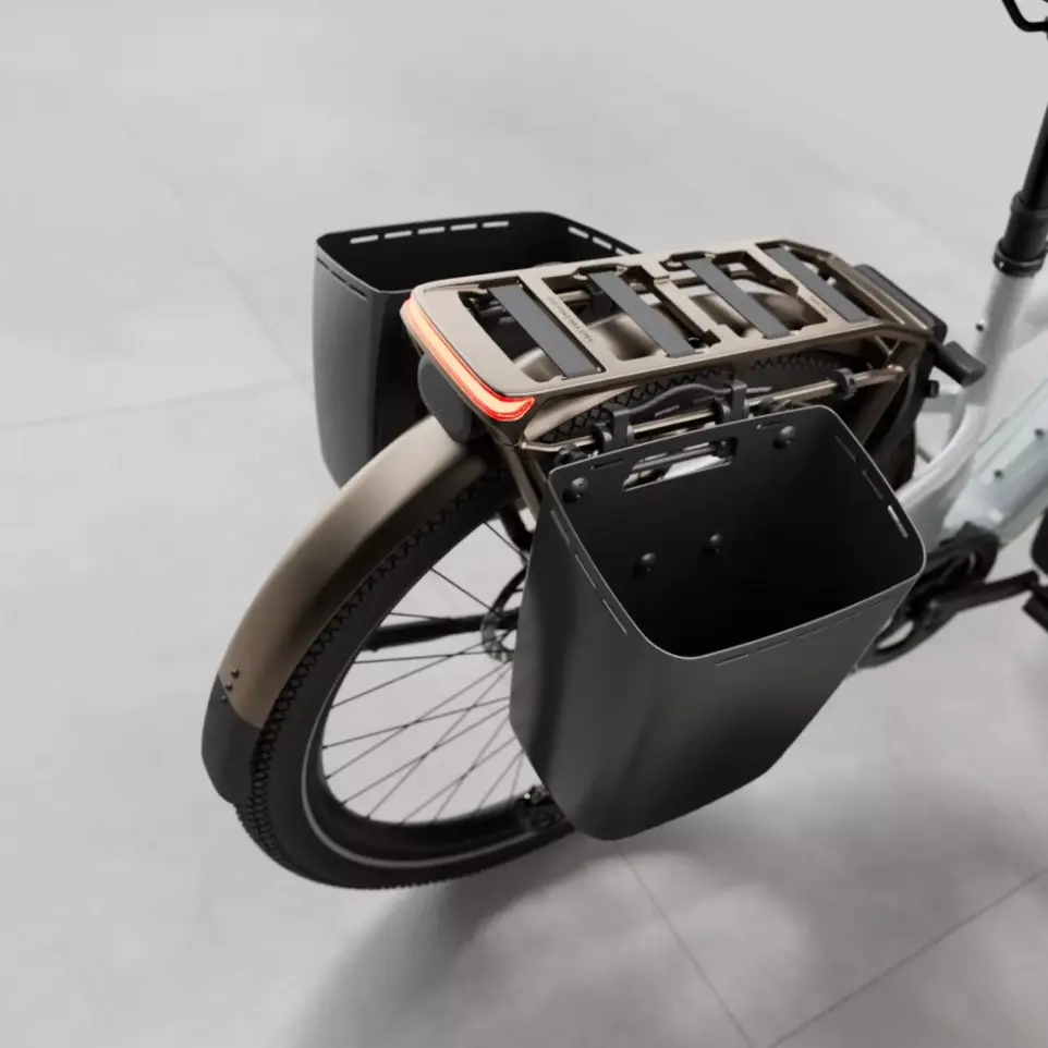 - Hyvin varustellusta sähköpyörästä löytyvät mm. valot, tavarateline, lokasuojat ja seisontatuki.