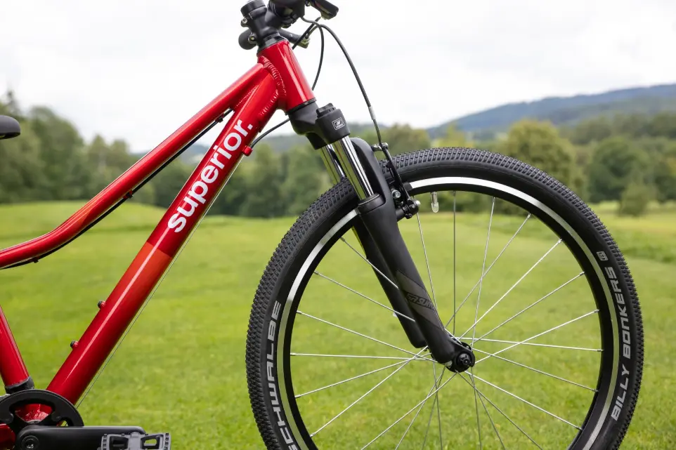 Kevyt ja laadukas nuorten 24" maastopyörä joustokeulalla ja helppokäyttöisillä vannejarruilla.